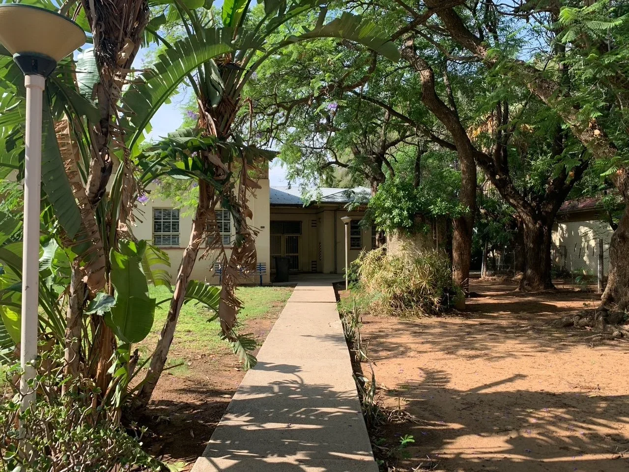 Ein besonderer Schwerpunkt lag auf dem Schülerheim der Otjiwarongo School Support (OSS). Die Otjiwarongo Secondary School ist eine wichtige Bildungseinrichtung in Zentralnamibia und ermöglicht vielen Kindern und Jugendlichen, trotz schwieriger Lebensumstände regelmäßig zur Schule zu gehen. Gerade in der aktuellen Regenzeit war schnelle Hilfe dringend erforderlich: Das Dach des Schülerheims musste repariert werden, um die Sicherheit der Kinder zu gewährleisten. Zusätzlich wurden Palmen zurückgeschnitten, deren Wurzeln und Äste die Dächer beschädigt hatten.