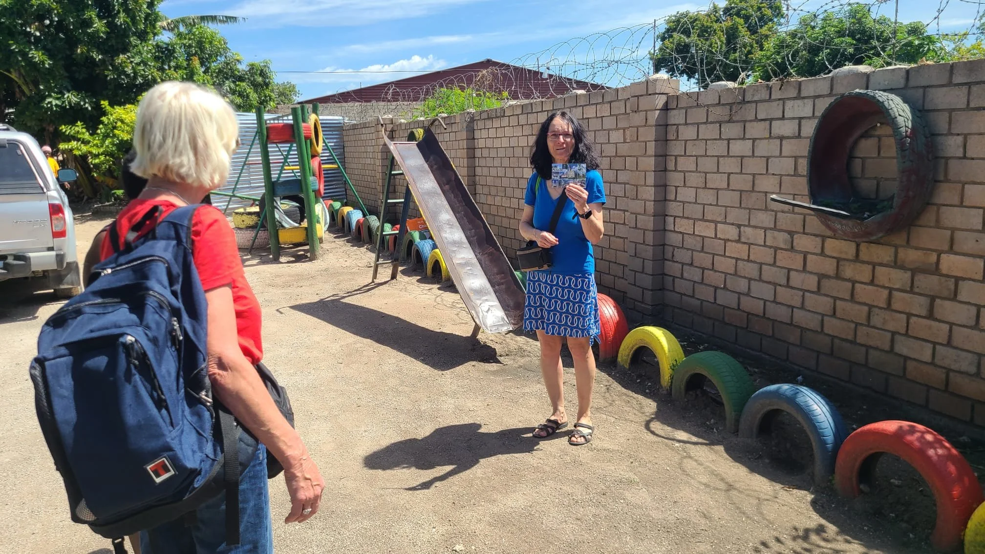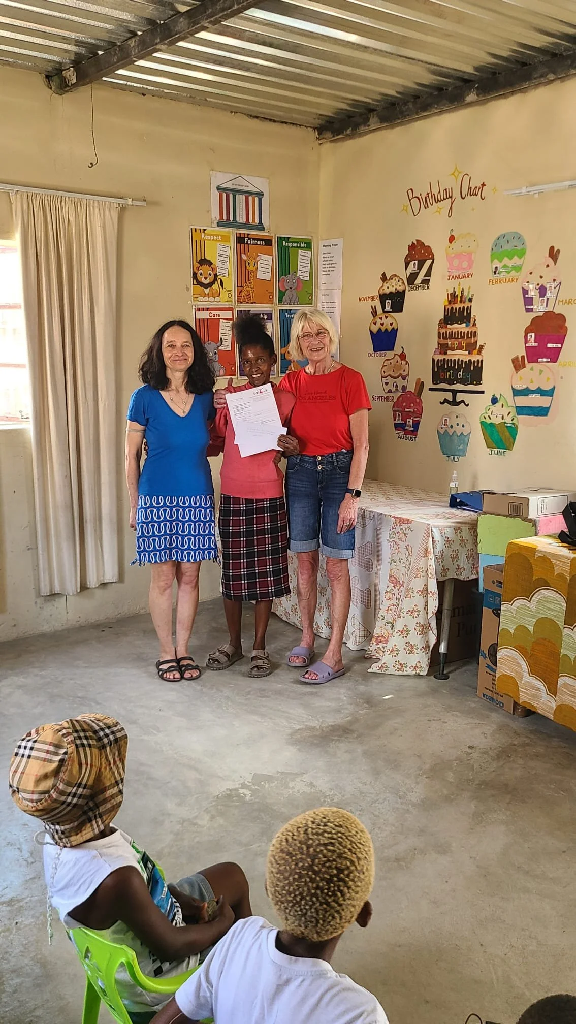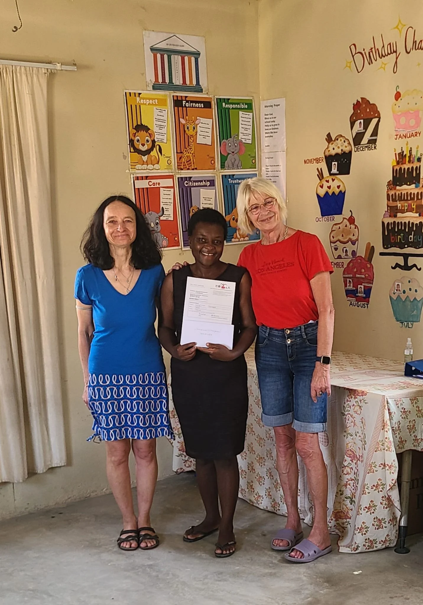 Zusätzlich gab es vor Kurzem weiteren Besuch in Grootfontein: Gabi und Franz Garrecht haben den Kindergarten von Magdalena „Hope for the Needy“ besucht und dort ebenfalls Spenden in Form von Obst und Geld übergeben. Solche persönlichen Initiativen sind für die Einrichtungen von unschätzbarem Wert und bringen viel Freude in den Alltag der Kinder.